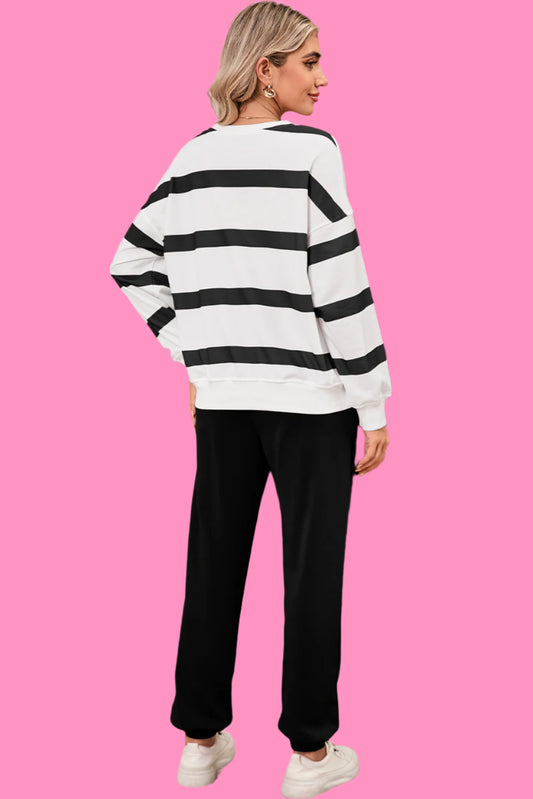 Black Striped Drop Shoulder Pullover and Joggers Set