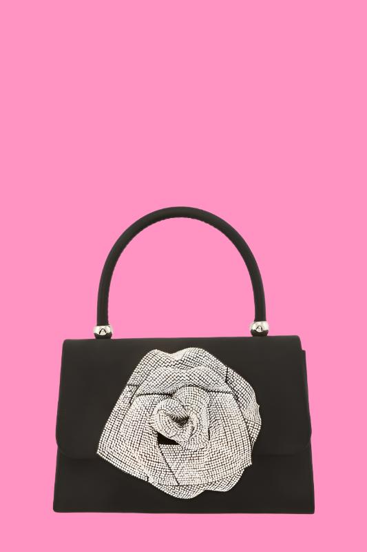 Crossbody Bag with Rhinestone Flower Accent